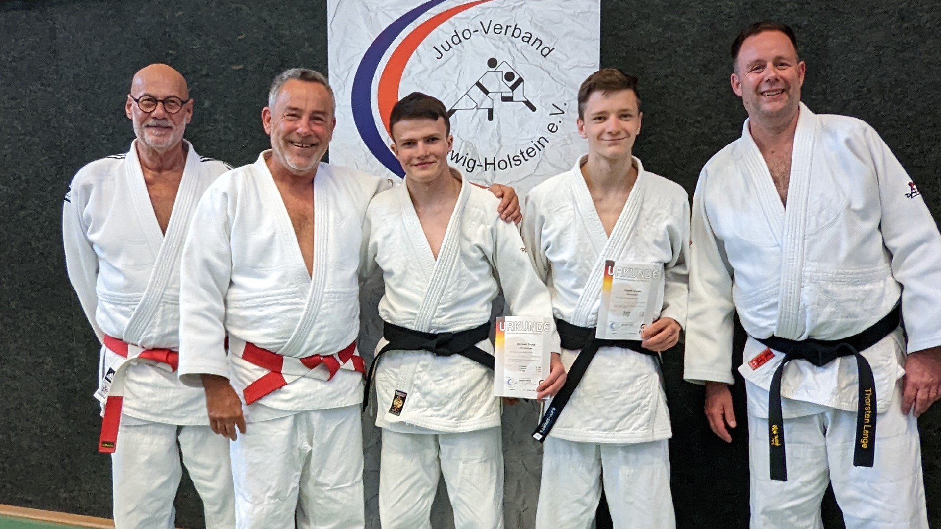„Ich bin sehr stolz darauf, dass meine jungen Athleten Michael und Daniel sich der großen Aufgabe gestellt und sie erfolgreich gemeistert haben. Zu Beginn des Jahres haben bereits beide die Lehrgangsnachweise Methodik des Anfängerunterichts und Kampfrichterlehrgang sowie die Prüfungsfächer Bodentechnik, Standtechnik und Methodische Aufgabe erfolgreich abgeschlossen, sodass am gestrigen Prüfungstags „nur“ noch die Fächer Kata, Vorkenntnisse und Theorie geprüft wurden. Michael und Daniel haben sich aber sehr gut und intensiv sowie mit Unterstützung der Eltern (Theorie) und der Gebrüder Schulan (Kata) auf dieses besondere Ereignis vorbereitet und konnten zum krönenden Abschluss verdient und zurecht ihren Schwarzen Gürtel umbinden. Nochmals herzlichen Glückwunsch zur bestandenen Prüfung.“, kommentierte abschließend Trainer Kai Onur.
