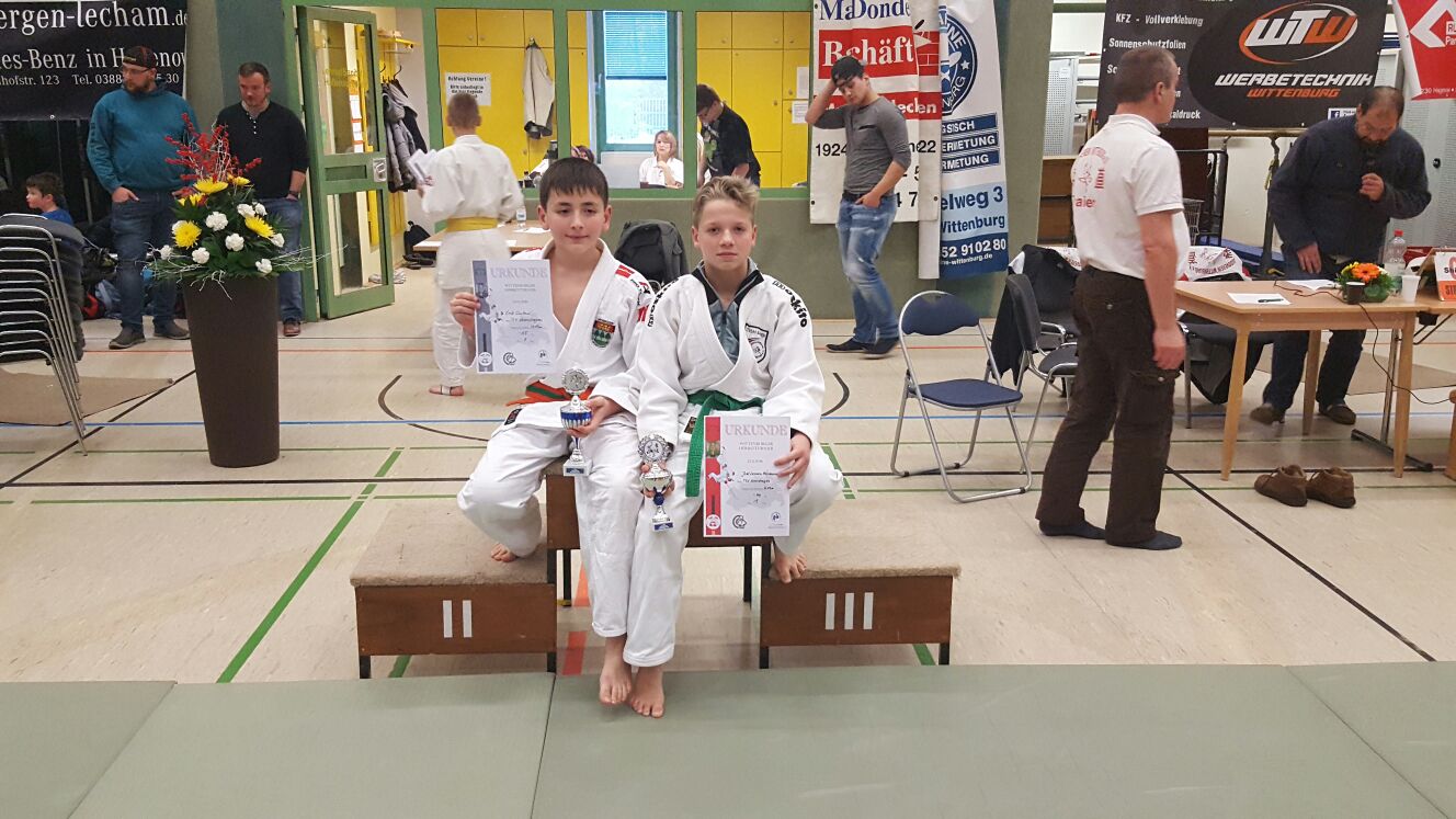 Erik Dukow (- 55 kg) | U12 | 1. Platz | Joel Lennox Herrmann (- 46 kg) | U15 | 1. Platz |