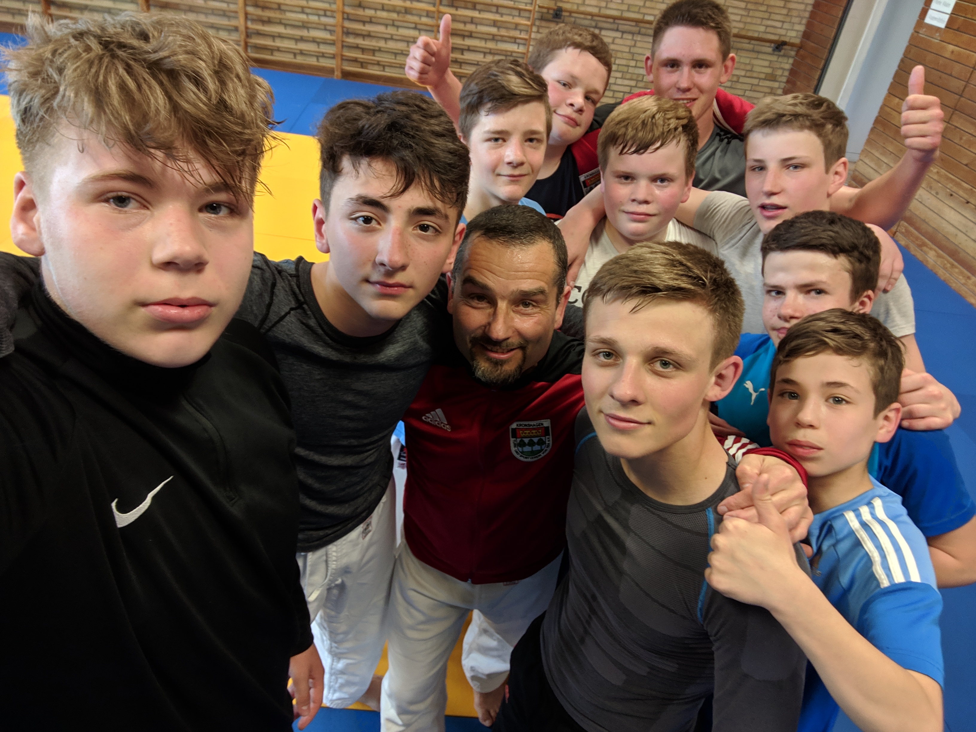 Erik, Nikita, Liam, Taha, Michael, Marco, Justin, Jason, Bela, Daniel und Trainer Kai